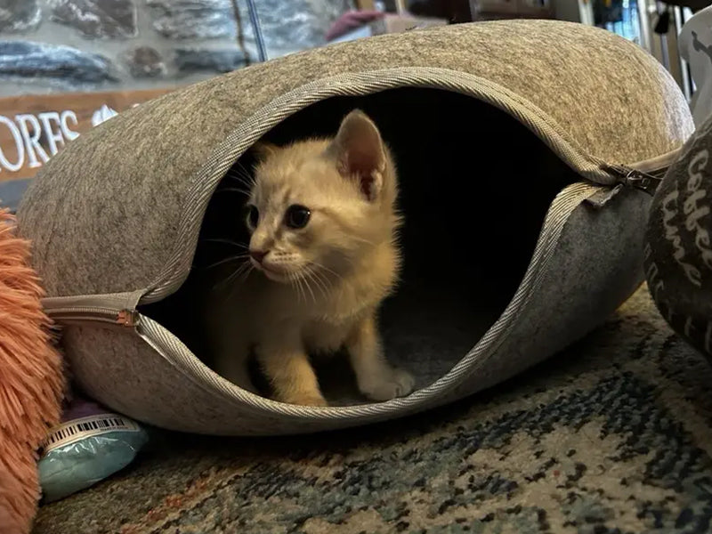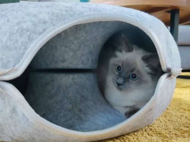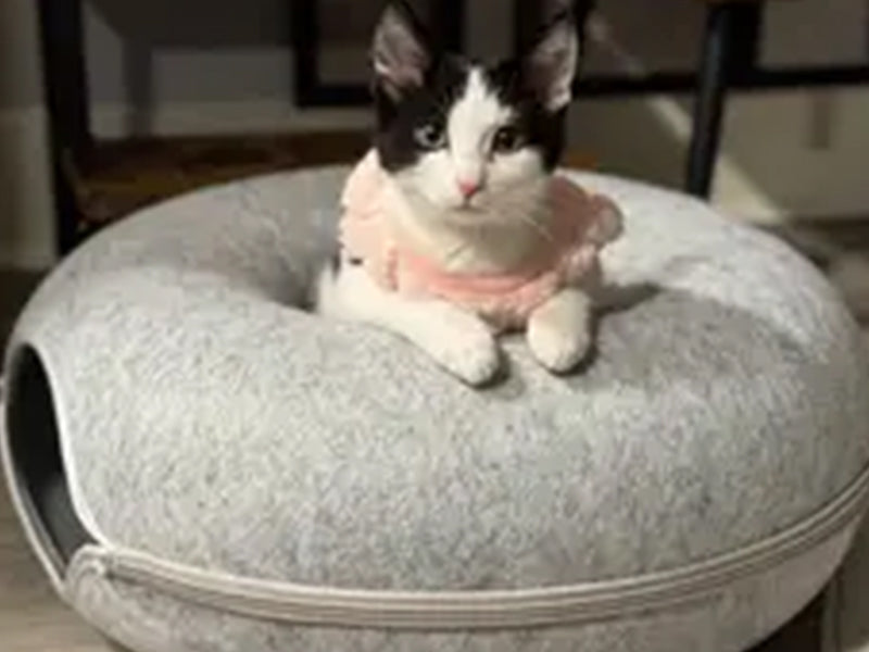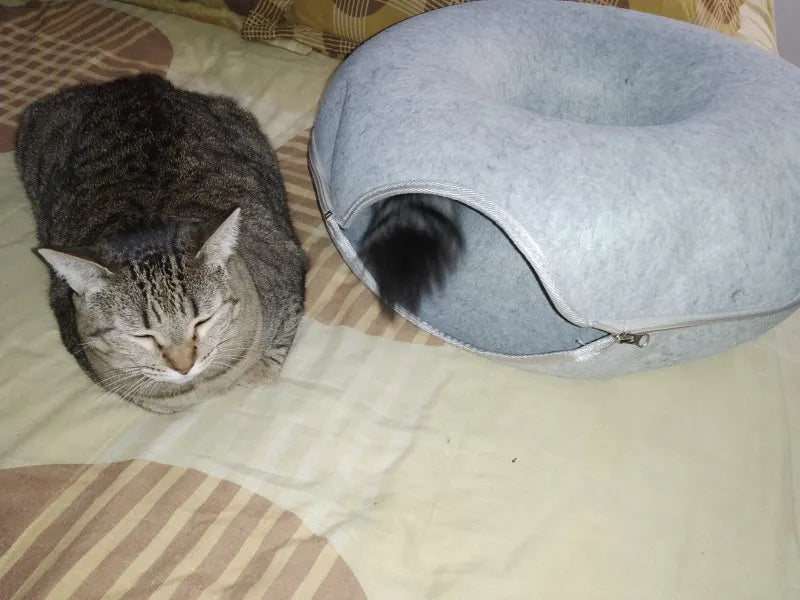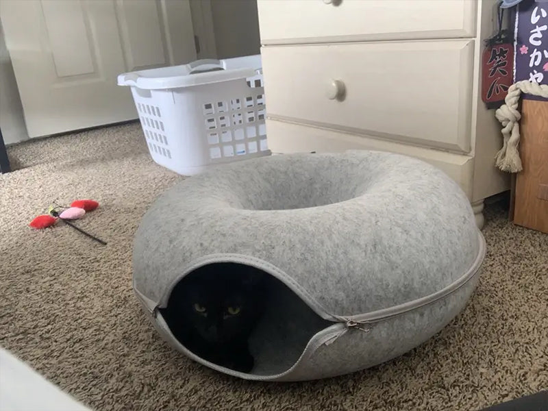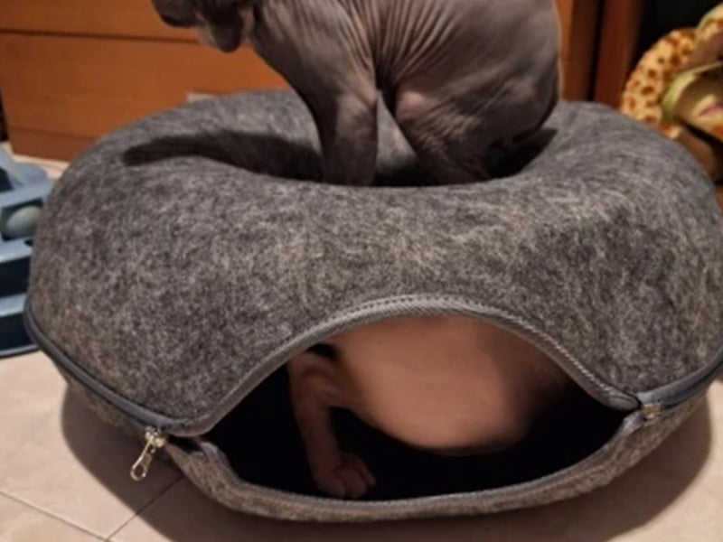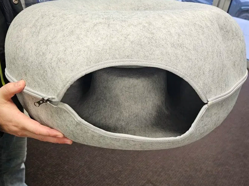 Let your cat have double the fun with the original Bed&Play™ Donut! This dual function bed and play tunnel is perfect for your cat to sleep and play!. The dome concave design allows for another cat to rest, without disturbing each other. Made from good quality felt material, this bed is wear-resistant, scratch-resistant, extra meow-resistant and perfect for all seasons.🐱🍩🌞🌧️